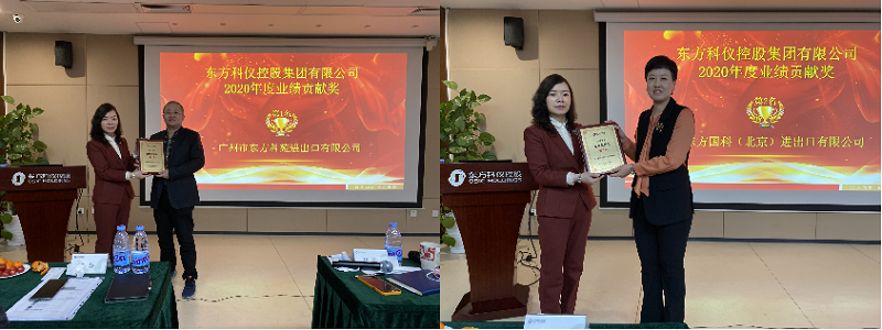 ??會議公布了2020年度東方科儀控股業績貢獻獎評選結果。廣州市東方科苑進出口有限公司榮獲業績貢獻獎第一名,東方國科(北京)進出口有限公司榮獲業績貢獻獎第二名。
