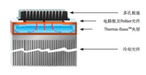 LightCycler480Ⅱ熱循環(huán)模塊的橫截面圖。Therma-BaseTM是一個內壁布滿燈芯狀毛細管結構的腔體,以有效增大接觸表面積。通過一系列實時冷凝和蒸發(fā)效應,高效傳遞熱量,從而實現(xiàn)整板優(yōu)秀的溫度均一性。