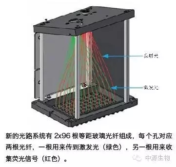 LightCycler480Ⅱ檢測單元橫截面圖。采用了精心設計的五角棱鏡光學結構,光學元件及焦距的巧妙組合確保了整板信號激發(fā)的特異性與數(shù)據(jù)收集的一致性,從而清除了邊緣效應。