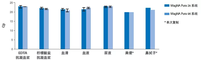 圖8. MagNA Pure 24系統只需一個試劑盒和一個實驗方案即可從不同樣本類型中分離核酸,提高病原體檢測效率