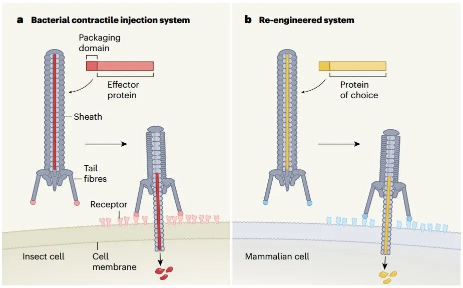重新設計細菌的胞外可收縮注射系統,將其改造為專門靶向特定人類細胞遞送所需蛋白質的裝置