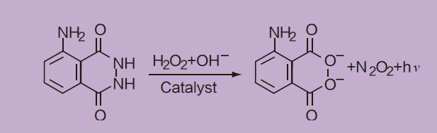 常見的化學發光組合是魯米諾(3-aminophthal hydrazide, Luminol)底物與辣根過氧化物酶反應。魯米諾于 1928 年首次被合成為化學發光底物,該底物的發光反應需要苛刻的條件,發光暗淡且持續時間短。
