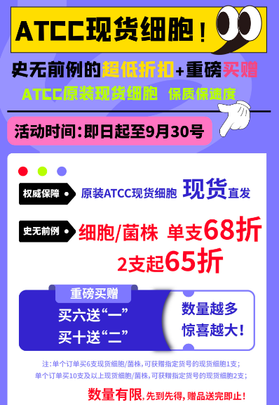 史無前例!ATCC 現(xiàn)貨細胞促銷力度拉滿:不止 65 折,更有買贈加碼~