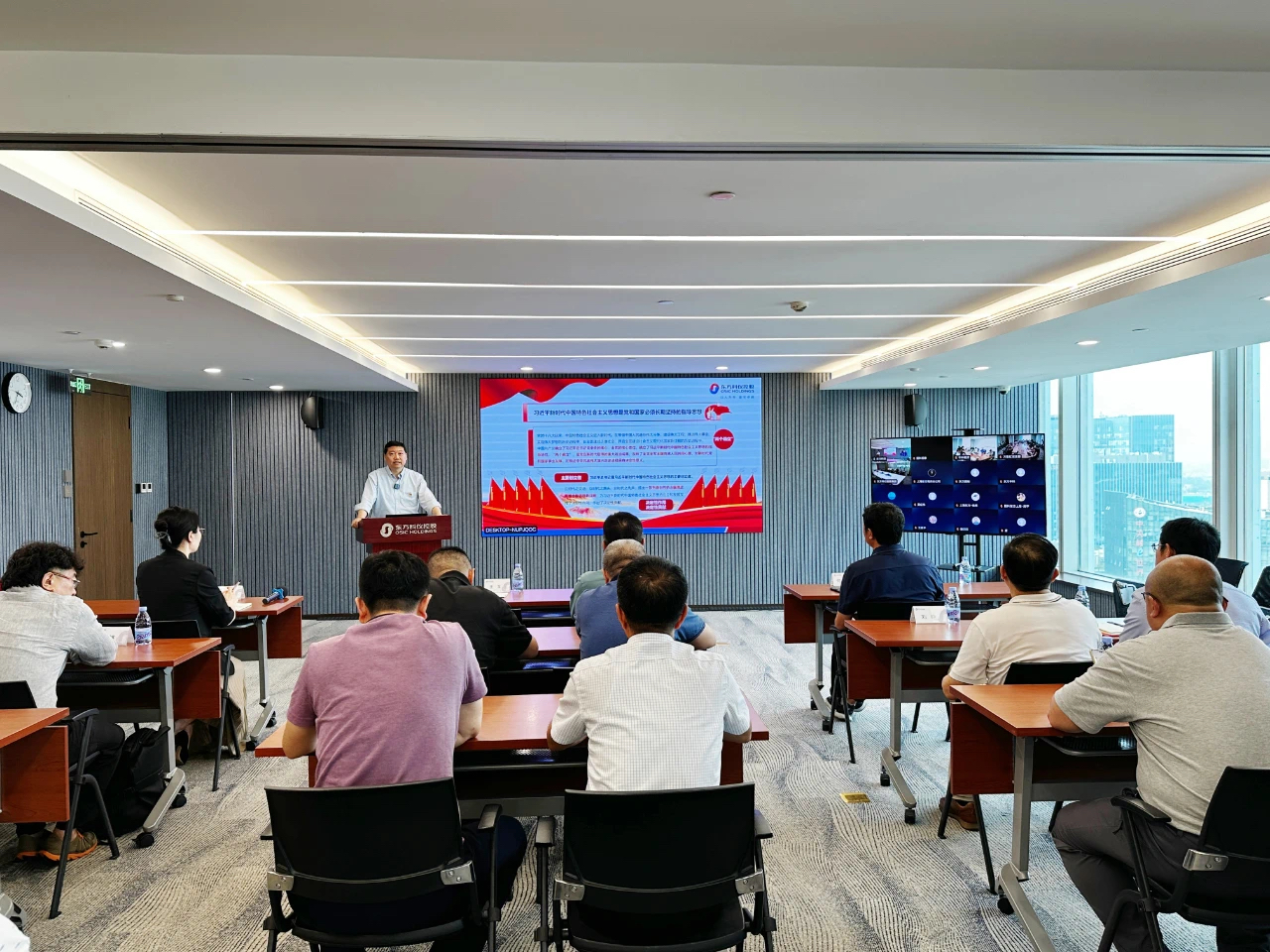 ??6月30日,東方科儀控股集團有限公司(以下簡稱東方科儀控股)開展黨委書記講專題黨課暨慶祝中國共產(chǎn)黨成立104周年“七一”黨群團聯(lián)合表彰,會議采取主會場現(xiàn)場參會和分會場視頻參會相結(jié)合的方式,集團公司和京內(nèi)外成員企業(yè)黨員、團員及工會會員代表等200余人參加了會議。