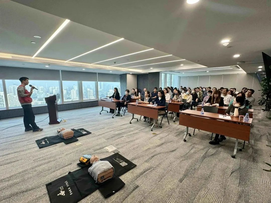 ??本次培訓采取理論教學和實操演練相結合的方式進行,邀請具有專業資質、豐富急救知識及從業經驗的講師進行授課。在理論教學環節,培訓老師詳細講授了心肺復蘇相關理論知識,重點講解了海姆立克急救法、胸外按壓操作方法、體外自動除顫儀(AED)使用方法等應急救護原理和技術方法。在實操演練環節,培訓老師利用醫用人體模型現場演示心肺復蘇操作流程、AED使用方法,同時對急救過程中需要注意的事項進行講解,并指導參訓人員進行實際操作。