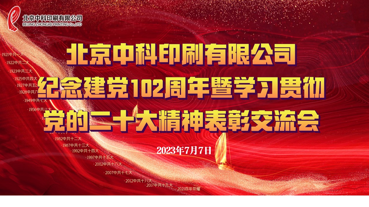 2023年7月7日上午,北京中科印刷有限公司召開紀念建黨102周年暨學習貫徹黨的二十大精神表彰交流會,深入學習貫徹習近平新時代中國特色社會主義思想,總結2023...